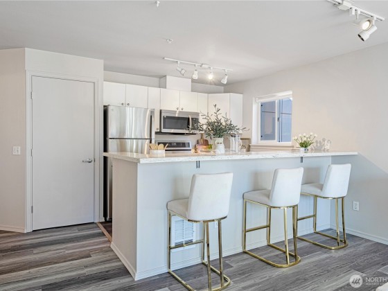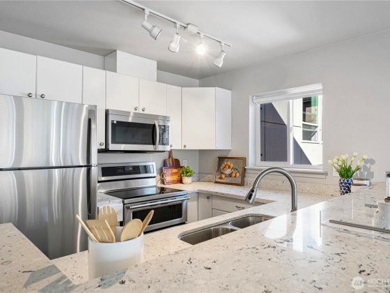 This 1-bedroom offers iconic Space Needle views from the living room and bed room. Updated crisp & clean kitchen with the new stainless appliances. Convenient open layout flows easily into dining & living area. Premier amenities include a rooftop deck w/sweeping view of the Seattle skyline, fitness center, business lounge. Two parking spaces that are included. Just a block from climate Pledge Arena and three blocks to Olympic Sculpture Park. Surround by bars, restaurants and coffees shops. No rent cap, No special assessments.