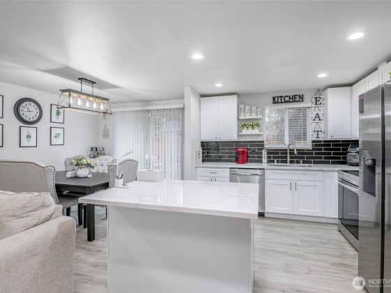 Beautifully remodeled 3 bedroom one story home! Walk inside to this light & bright open concept living with island kitchen, newer cabinets, quartz countertops, stainless steel appliances, gorgeous fireplace, newer flooring and a dining room right off the kitchen! Spacious living area for entertaining, good size secondary bedrooms, nice size primary & a beautifully updated bathroom! Outside features a large fully fenced yard, 2 car garage & RV parking! Convenient commute to JBLM, schools, parks & shopping with NO HOA! This home has it all - don't miss this one!