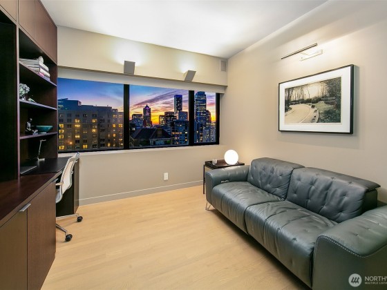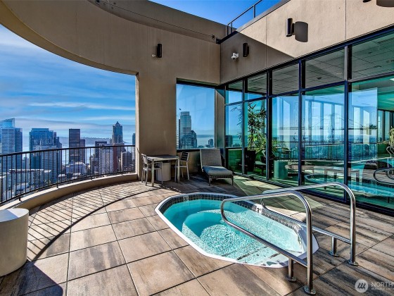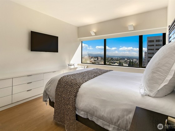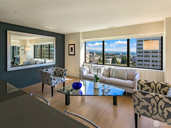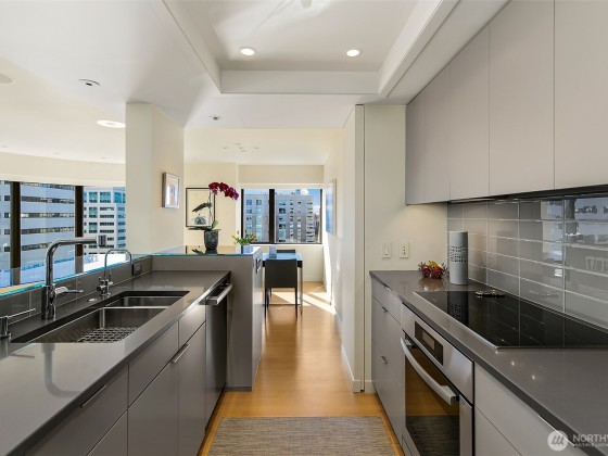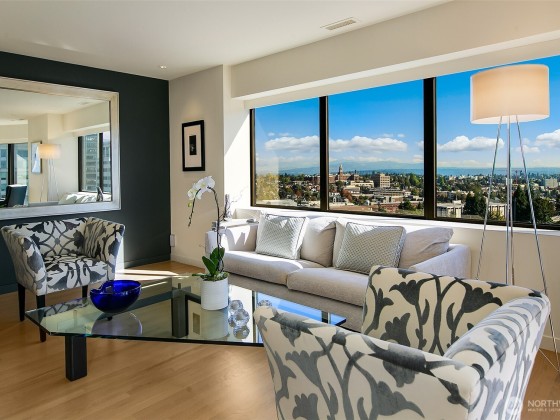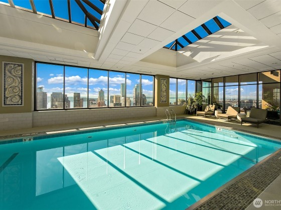 Step into effortless elegance at this beautifully remodeled First Hill condominium, where luxury meets convenience in a premier steel-and-concrete high-rise with 24/7 concierge, rooftop pool and spa, tennis and pickleball courts, and serene garden courtyard. Inside, refined design awaits—white oak floors, Carrara marble primary bath, quartz and limestone countertops, custom cabinetry, and Miele and Sub-Zero appliances. Enjoy a spacious entertaining area with wine closet. Southwest exposure with walls of windows, air conditioning, hospital-grade air purification, and filtered kitchen water. Includes electric vehicle charger, one oversized parking spot, and large storage unit. A true in-city oasis.