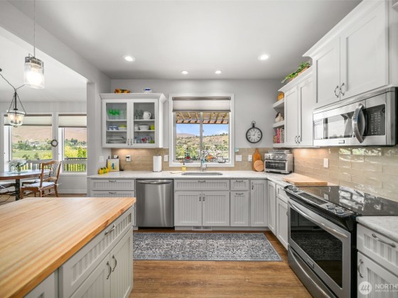 This spacious four-bedroom home overlooks the Wenatchee River offering privacy and lush landscaping on 4.37 acres. The property features multiple outdoor gathering areas, large picture windows and an updated kitchen. The primary suite includes a tiled walk-in shower and a walk-in closet. The recreation room, equipped with a wet bar, is perfect for watching the big game or can be transformed into your home gym. Just in time for summer, you can enjoy the backyard retreat, which boasts an in-ground pool. The 1,308-square-foot (ADU) provides options for multi-generational living, featuring vaulted ceilings, an oversized primary bedroom, a spa-like bathroom, and a walk-in closet. There is plenty of space for your toys in the detached shop!