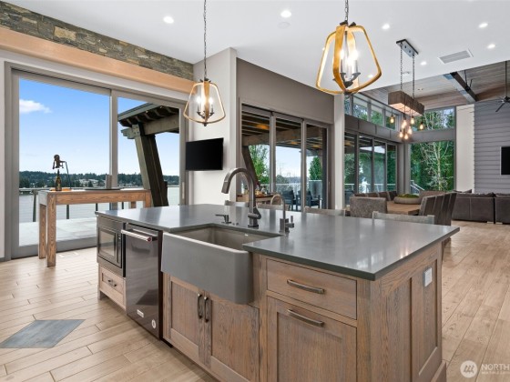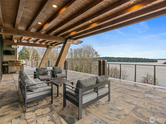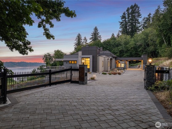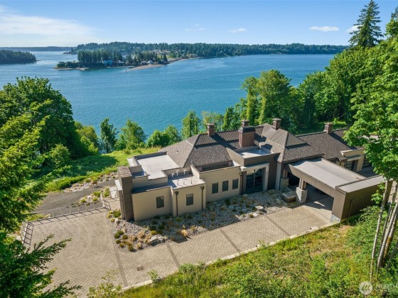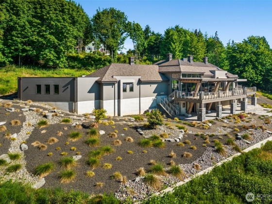 Time seems to pause on this private, gated estate, perfectly perched to capture expansive saltwater views w/ 776+ ft of waterfront + tidelands! A true architectural marvel. Crafted w/ uncompromising quality, 2x6 construction, copper cupolas & gutters, radiant polished concrete flrs, quartz throughout, 16-foot ceilings & 12-foot glass lift-and-slide doors. Highlights include a Valor fireplace, a stunning custom curved glass staircase, distressed oak cabinetry, a wine cellar, & a massive 1,641 sq. ft. garage. Every high-end detail was thoughtfully selected for performance & style, designed to harmonize effortlessly w/ the changing seasons of the PNW. Fully furnished & beyond imagination—this is a place you have to experience to believe.