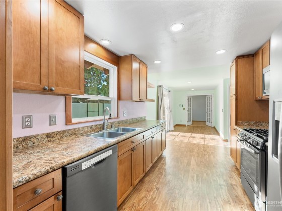 Wow-factor rambler on a corner lot + cul-de-sac in sought-after Hilton Lake area of Silver Lake! Nearly 1,800 sq ft of updated living space + rare 4-car garage w/shop (almost 1,100 sq. ft.)—perfect for projects, or future ADU. Updated kitchen w/ real wood soft-close cabinets, pullouts, gas stove + SS appliances. Bright living room w/ bay window, crown molding & cozy wood fireplace. 4 beds, 2 baths including a private wing ideal for guests or multi-gen living. Refreshed primary, remodeled bath, newer carpet & flooring, LED lighting. Fully fenced low- maintenance back yard, dog run, shed. Newer roof, furnace, water heater, PEX plumbing, and more—PREINSPECTED- this home is turn-key and built to impress!Close to Mill Creek, Everett & Snohomish!