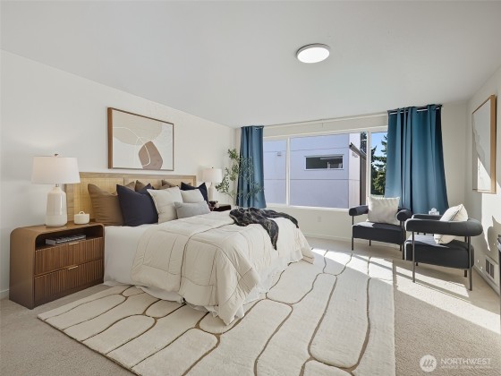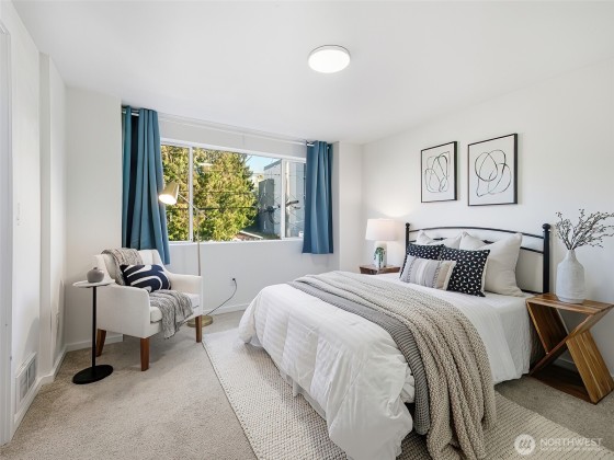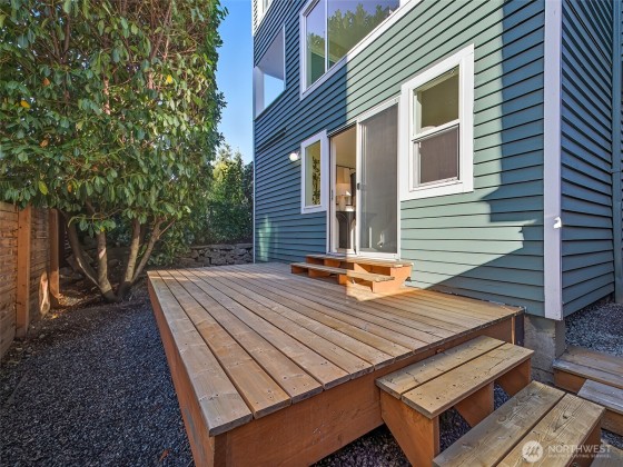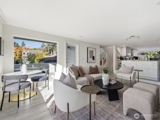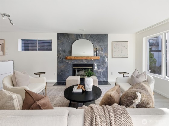 Modernized 3-Bedroom Standalone Townhome in the Heart of Wallingford. This NW Contemporary is nestled in vibrant Wallingford and thoughtfully updated to blend function with modern design. The main level features a reimagined kitchen with gleaming quartz surfaces, cabinetry, and updated flooring that flows into an inviting living area with a wood-burning fireplace and access to a private deck. Upstairs, the sunlit primary suite includes a luxurious ensuite, accompanied by a second bedroom with ample closet space and a beautifully renovated three-quarter bath. The lower level offers flexibility with a third bedroom and 3/4 bath. 1-car attached garage and unbeatable access to I-5, Hwy 99, and all that Wallingford and Stone Way have to offer.