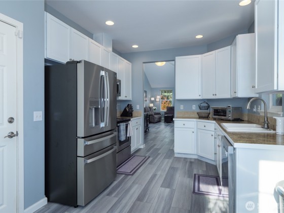 Easy Living in Sequim- Take a look at this move in ready Jennie’s Meadow quality-built 2-bedroom, 2.5-bath townhome. Located just minutes from shopping, dining and quick access to the Discovery Trail. Step through the grand 8’ front door into a bright, open-concept living space with custom paint and flooring, electric fireplace, vaulted ceilings and skylights. The spacious kitchen features stainless steel appliances, ample cabinetry, a pantry and breakfast nook - perfect for both cooking and entertaining. Main floor primary suite with attached bathroom and HUGE CLOSET. Utility room and powder bath on main floor. Upstairs you’ll find a second bedroom, full bath, and versatile loft area—ideal for a home office. Outdoor space off living room.