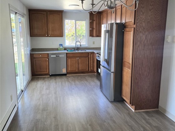 WOW! Welcome to this beautifully updated 3 bdrm home that blends comfort, style & functionality. Freshly painted inside & out, this property shines with curb appeal & thoughtful updates throughout. Step inside to discover spacious living areas featuring laminate hardwood flooring, large living room w/fireplace, bright kitchen w/sleek new appliances & new vinyl flooring that adds both durability & charm. The new roof provides peace of mind for years to come, while the attached garage offers convenient parking & storage plus room for RV on large driveway. Out back, enjoy a fully fenced yard - perfect for pets, entertaining, or gardening, plus two versatile storage/work sheds. The huge backyard is ready for your outdoor entertaining!