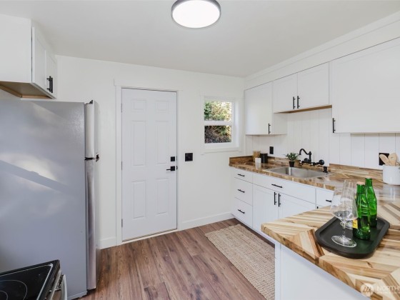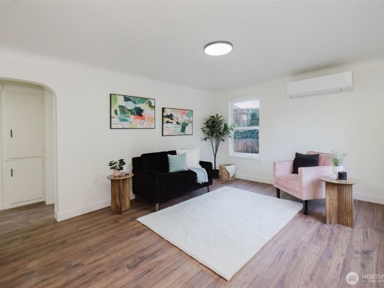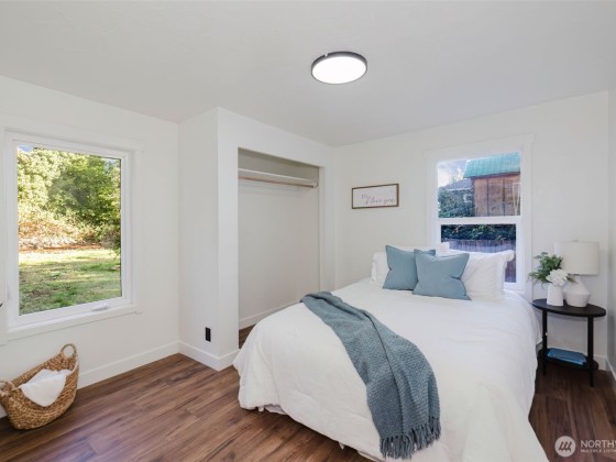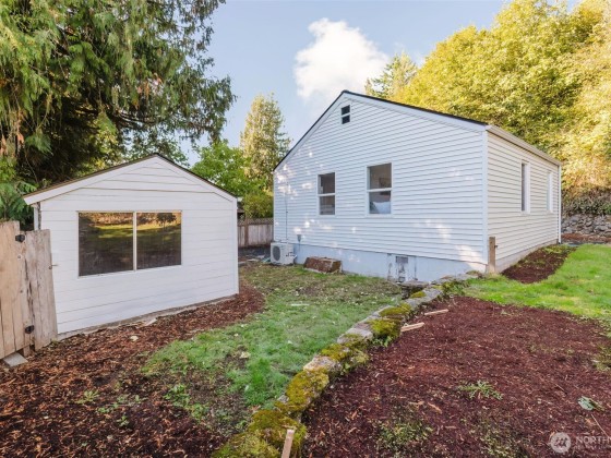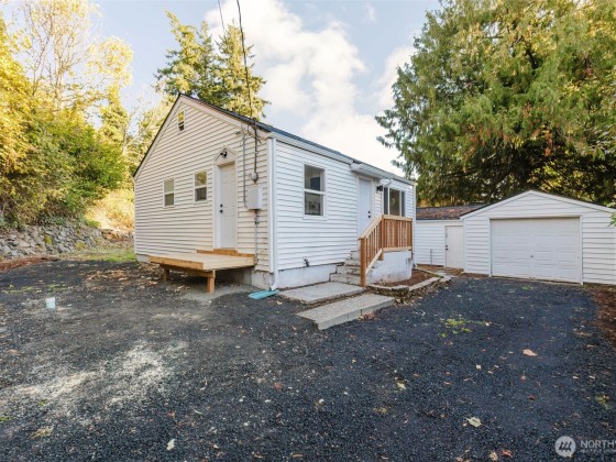 Beautifully remodeled 2-bedroom, 1-bath home in Bremerton! The bright living room is filled with natural light, and new flooring throughout adds a fresh, modern touch. Enjoy a charming kitchen with new appliances and split units for efficient heating and cooling. Located at the end of a quiet dead-end street, this home offers a detached garage with extra storage or workshop space, plus a large backyard with room to garden or relax. Conveniently close to PSNS, shopping, and transit.