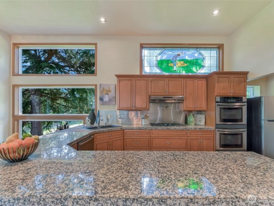 Pristine NW Architectural Designed 5-bedrooms 4-bathroom Property In Twin Lakes Most Sought After Neighborhood. Pride of ownership is found throughout. Towering Great Room with sky-high ceilings encompasses the vast living/dining & sitting rooms. Splendid tiled fireplace/banks of windows & quiet privacy. Chef super- sized, appointed kitchen, upgraded stainless steel appliances, double-oven, massive granite island. Primary suite handles your largest of furniture, luxurious 5-piece bath, personal washer/dryer utility. Upstairs 2 spacious guest rooms share full sized private bath. Lower level has Bonus Rm/wood mantled fireplace/wet bar/2 bedrooms/full bath & utility. Home sits privately off the 16th green, 2 large covered decks, huge garage!