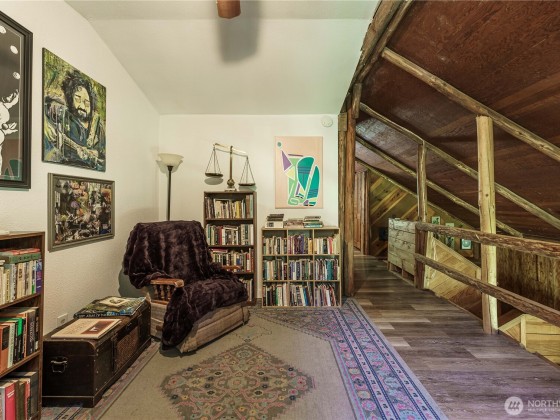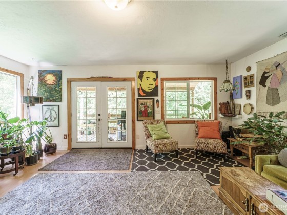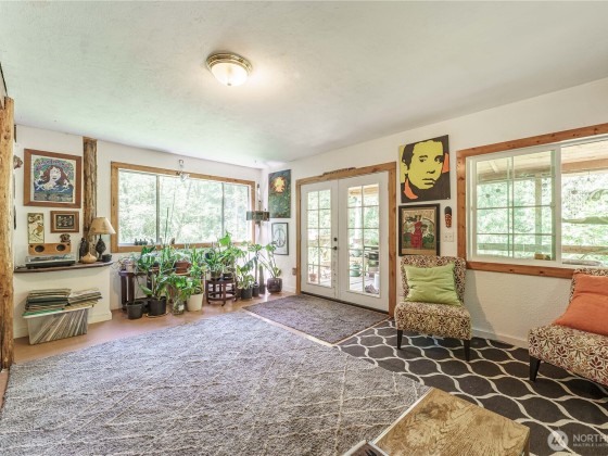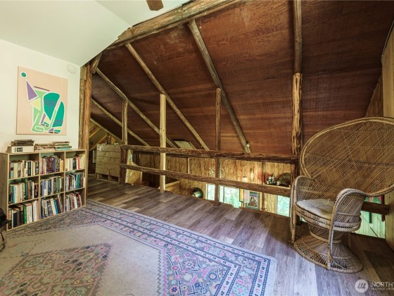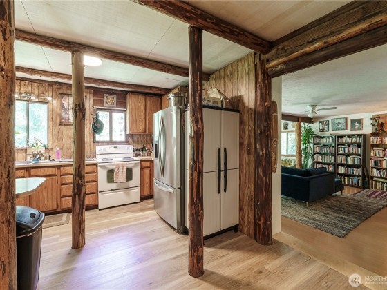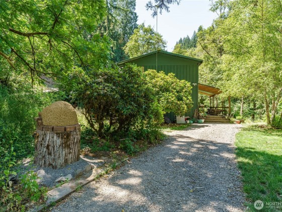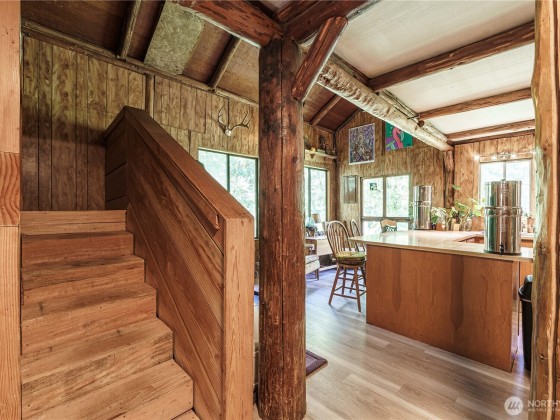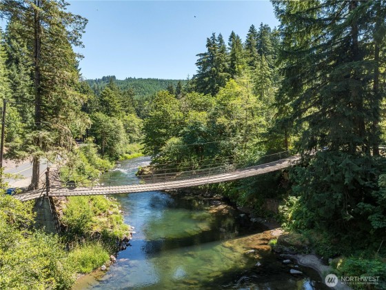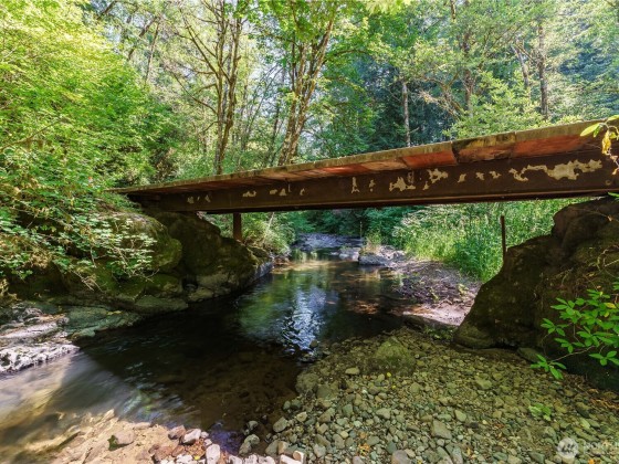 Over the river and through the woods you'll find your own fairy tail come true. Located on over 6 magical acres, this unique and sought after property borders both the Kalama River and Little Kalama River. To get to the property you'll first cross a wooden suspension bridge then your own smaller private bridge. The first thing you'll see and hear is the Little Kalama River and the home's covered front porch looking over it. Inside there is light flooding throughout the living areas. There are vaulted ceilings and a loft looking over the kitchen and dining room. The log post and beam construction gives a woodsy and calming feel that make this home feel like another time. Is it too beautiful? Will you ever want to leave? Or is it just right?
