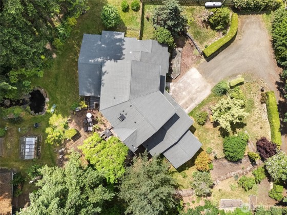 Huge price drop!!! See this gorgeous home before it's gone. Welcome to your private, incredibly landscaped, oasis on 1.1 acres! This 2,741 sq ft home offers 3 bedrooms, 2.5 baths, and incredible outdoor living. The kitchen beautifully updated and includes a wonderful Viking range. The home includes flex spaces, currently used as office, craft room and exercise room with seperate entrance. Spacious Primary overlooks pond and backyard. Outside, enjoy a landscaped yard with a tranquil pond with cascading waterfall, a wisteria-covered patio, and a basketball court. Outbuildings include a greenhouse, shop, and two sheds. An upgraded metal tile roof adds lasting durability.