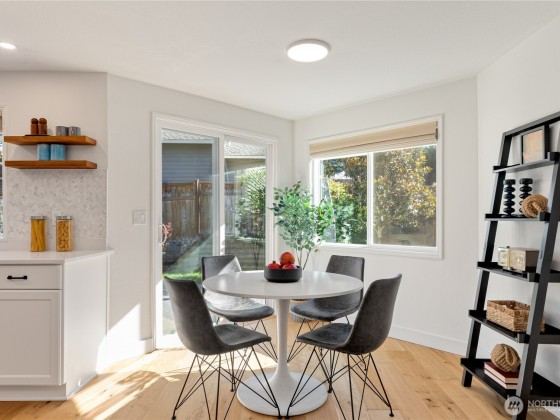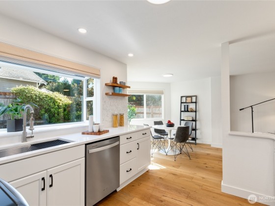 Beautifully renovated Kirkland home ideally situated on a private corner lot in the Kingsgate neighborhood. The comfortable main level offers bright living and dining rooms with ample light, vaulted ceilings and a fireplace. A kitchen update was just completed with modern cabinetry, quartz counter tops, custom tile accents plus a full suite of new SS appliances. A family room, half bath, laundry alcove and two car garage round out the main level amenities. Upstairs features a tastefully updated primary suite + two additional bedrooms with shared bath. The fully fenced backyard and patio are directly accessed off of the kitchen and offers the perfect entertaining space. New hardwood floors and fresh paint. Walk to The Village at Totem Lake.