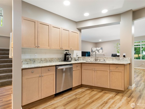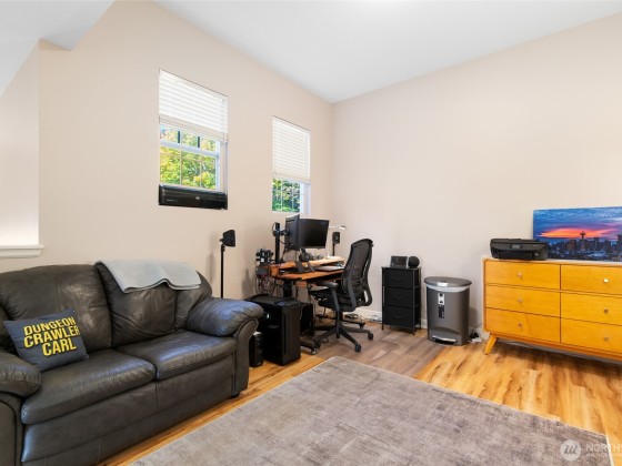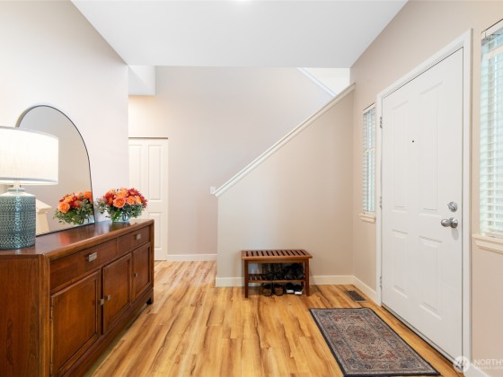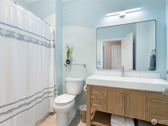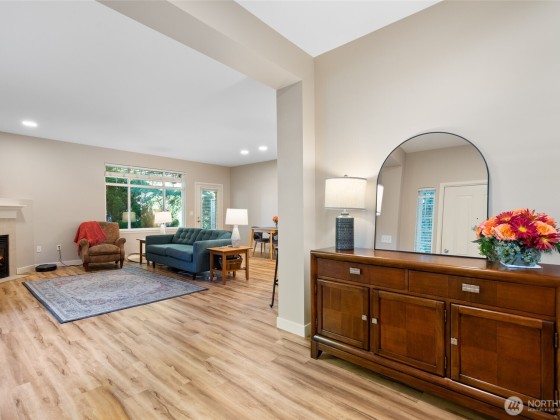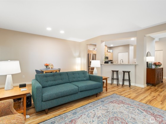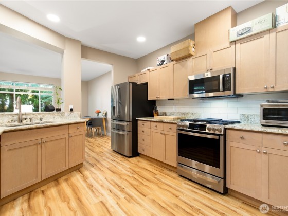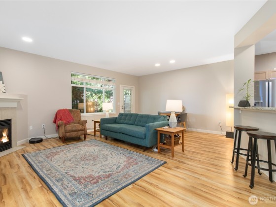 Conveniently located and move-in ready townhome in desirable Cheswick Lane. Thoughtfully refreshed with new interior paint, LVP flooring, LG washer/dryer, GE Profile kitchen appliances, solid wood trim, & central A/C. Main level offers an open floor plan with spacious living & dining areas, a well-appointed kitchen, bedroom, & updated full bath. Upstairs, a versatile loft is ideal for office, media, or hobbies. The primary suite features a fully renovated bath with vessel tub, heated floors, new vanity, & walk-in closet. Low dues cover exterior, roof, & common areas; roofs replaced in 2022. Includes newer tankless water heater, 2-car garage, USB ports & smart-wire ready. Prime location near shopping, services, & top Lake Washington schools.