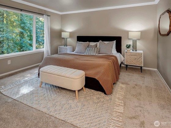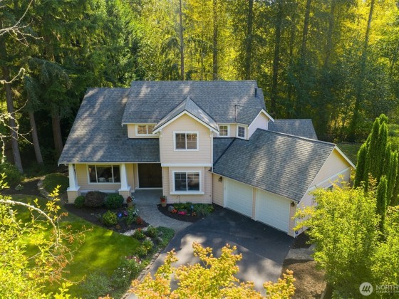 Stately and inviting, this Sammamish home blends quality finishes, privacy, and comfort in one high-end retreat. At its heart, a grand chef’s kitchen, two dining areas, and a bonus room with cozy fireplace flow seamlessly together, while a separate living room and den add flexibility. Built-ins and hardwoods grace the main floor, with new carpet upstairs leading to a spacious primary suite with spa-like bath and soaking tub. Outdoors, enjoy true Northwest living on a rare 3/4 acre private lot with a huge 700-sq-ft deck, lush greenery, and a flower-lined driveway that says “welcome home”. A huge nearly 600-sq-ft garage, modern updates, complete this quiet oasis close to parks, amenities, and award-winning Issaquah schools.