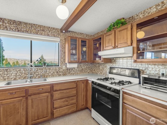Stunning residence w/ gorgeous city and mountain views. 3 bedrooms & 2 full baths. Newly painted large deck for morning coffee. Fully fenced backyard w/ terraced lawn, powered storage shed on foundation & space for a garden. Home has laminate wood flooring in main space & vinyl in bathrooms, making it great for pets or allergy-friendly living. Formal living room w/ wood-burning fireplace. Family room w/ wood stove. Kitchen w/ island, pantry & built-in desk for working from home. Dining w/ sliders to deck. Primary suite w/ dual walk-in closets, private bath w/ jetted tub, double sinks, shower & water closet. Circular drive w/ RV space & 1,000 sqft loft above garage for storage, gym or studio. New gas furnace in Dec. 2024 for efficiency.