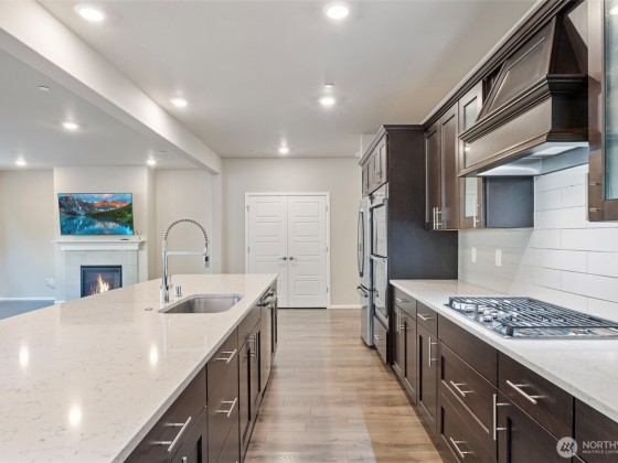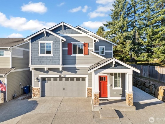 Beautiful Gated Community by Lennar on East Hill, Kent. This beautifully designed home offers vaulted ceilings, a main-level ensuite, and a spacious open-concept kitchen with an oversized chef’s island and a large walk-in pantry. The primary suite includes a huge walk-in closet, soaking tub, and separate shower. An upstairs bonus room adds flexible space for an office. Enjoy a low-maintenance, all-concrete backyard with pet-friendly turf, a newer central A/C unit, and a Tesla Level 2 charger. Meticulously kept and thoughtfully updated. Minutes from QFC, Starbucks, parks, Trader Joe’ s, Kent Station, and close to the Airport. Move-in ready with thoughtful upgrades throughout!