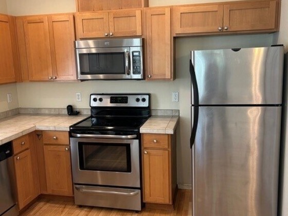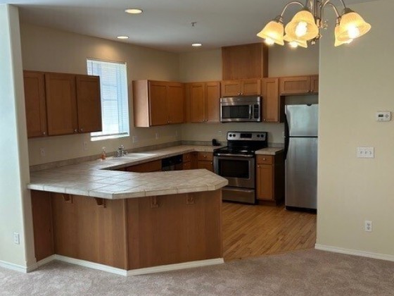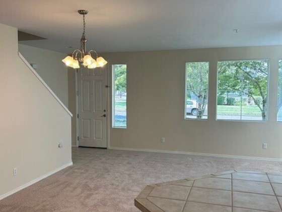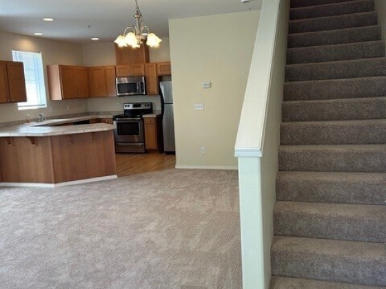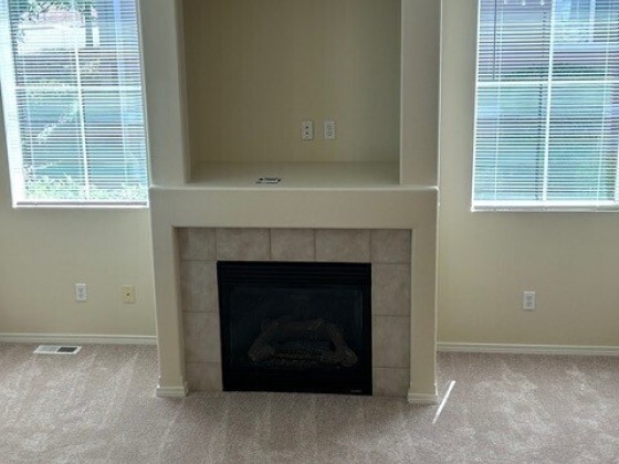 This open concept on main floor has new carpet & freshly painted! High ceilings & stainless appliances. Gas fireplace, two car garage, washer/dryer included. Full ensuite bath & walk-in closet.