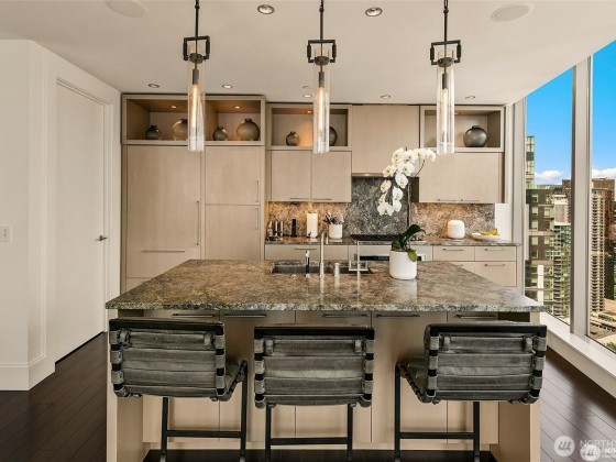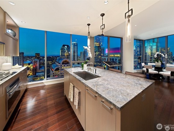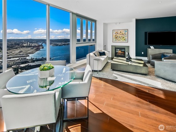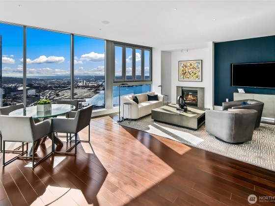 PENTHOUSE perfection-Perched atop the southeast corner of one of Seattle’s most coveted buildings, this exceptional two-level penthouse offers a rare blend of uncompromising luxury, privacy, and awe-inspiring views. Wrapped with floor to ceiling windows this home is flooded with natural light. A sky-high sanctuary capturing the very essence of PNW living, views stretch across the Sound to the Olympics, including views of the Seattle Great Wheel. Timeless elevated finishes through out the home. Arguably the best PRIVATE rooftop deck in the city, includes kitchenette, beverage center, kegerator, Jacuzzi,outdoor TV & speakers, gas fireplace, built-in Wolf BBQ. World class building & location.PIKE PLACE Market is you next door neighbor-2parking