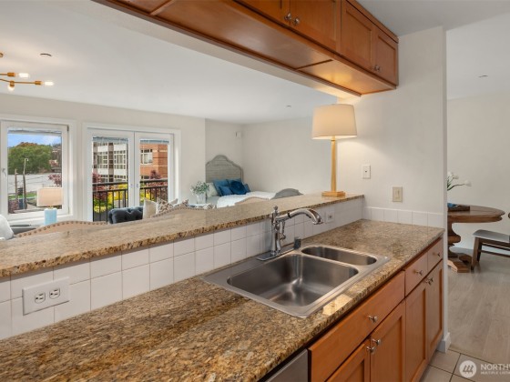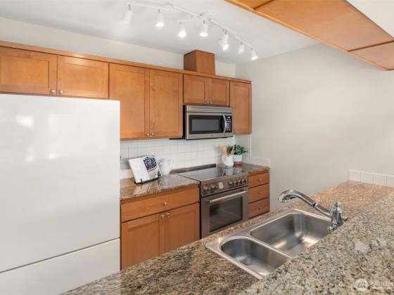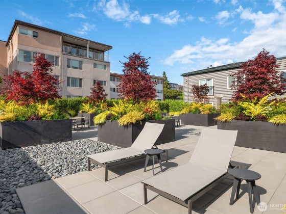 Just blocks from Seattle Center, Climate Pledge Arena, Myrtle Edwards Park, and a vibrant mix of restaurants + cafés, this top-floor Uptown/Queen Anne studio delights. West-facing windows bathe the space in sunlight, framing views of the Olympics above a lush, gardened rooftop. The open layout features a chef-inspired kitchen with granite counters, premium appliances, bar seating, and a cozy gas fireplace. A dedicated office nook provides quiet focus, while a spacious walk-in closet adds storage. The full bath includes a deep soaking tub + high-end in-unit washer/dryer. In a secure building with private parking, storage, gym, and serene community deck, this is the perfect city retreat or elegant pied-à-terre—live at the center of it all!