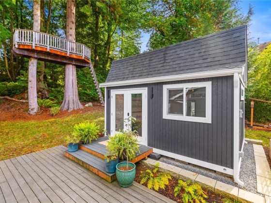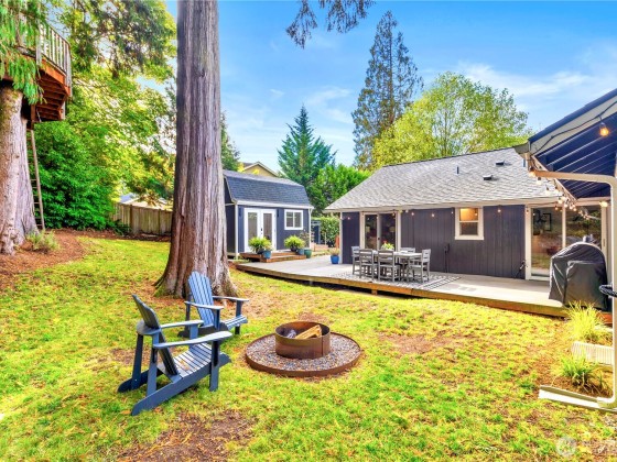 Live, work, play! Nestled in a wooded cul-de-sac near historic downtown Duvall, this private one-story retreat feels worlds away! Enjoy birdsong or the soothing seasonal brook, gather by the firepit or relax or entertain on the expansive low-maintenance deck. Updated throughout w/ fresh paint, carpet, lighting, hardware, roof. Primary suite offers spa-like bath, walk-in closet & door to deck. 1100 SF + INCREDIBLE 192 SF heated custom studio w/ loft is ideal for office, gym, playhouse or hobbies. Raised garden & planter beds, terrific custom treehouse, EV charger & ample parking complete this rare sanctuary where nature & convenience meet! Blocks to Microsoft shuttle stop, commute to major employers & enjoy top-rated Riverview schools!