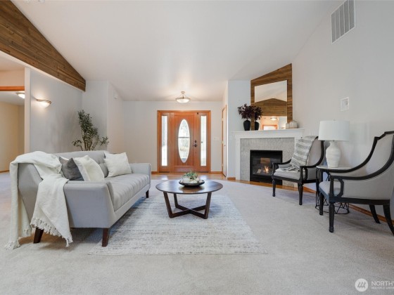 Welcome home to Sinclair Heights!—where timeless design meets modern updates in one of Port Orchard’s most sought-after neighborhoods. Vaulted ceilings elevate the expansive living room, anchored by a cozy gas fireplace. The remodeled kitchen is a showstopper: sleek bar seating, rich cabinetry, & premium KitchenAid appliances set the stage for gathering & cooking alike. The refreshed primary suite feels like a boutique hotel, featuring a newly remodeled bath with a huge walk-in tiled shower that’s as beautiful as it is functional. New windows throughout enhance both comfort & efficiency. Out back, a fully fenced yard & generous patio invite entertaining. Two-car garage, minutes to shopping & dining—this home lives with ease, style, & grace.