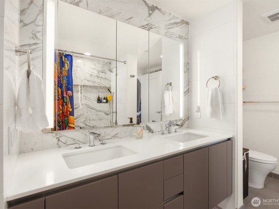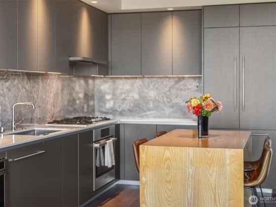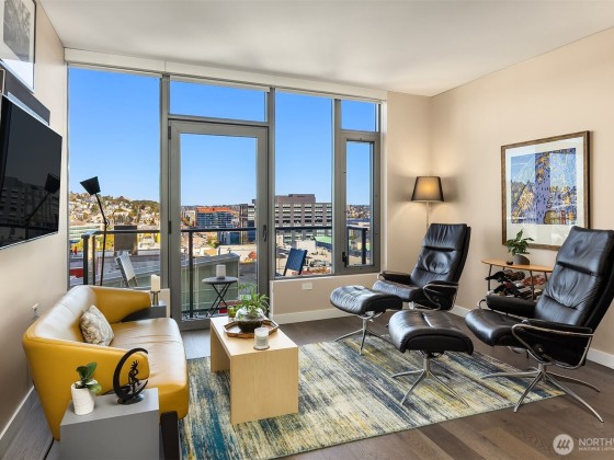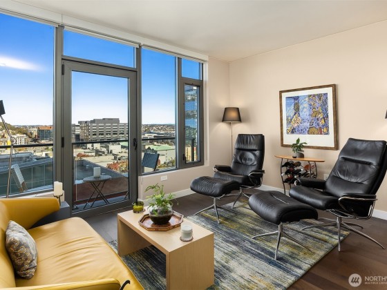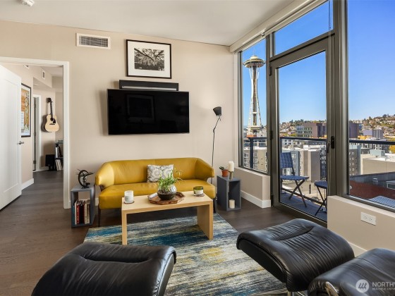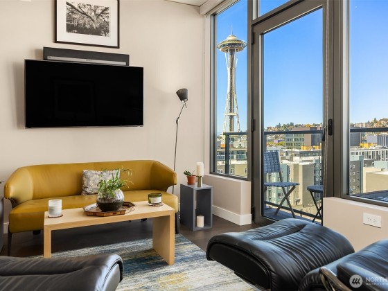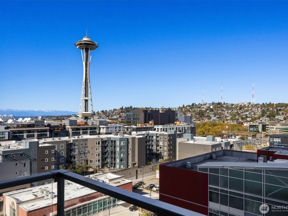 Welcome home to Spire and this lovely North facing, practically new one bedroom one bathroom home! Home #1109 has been gently loved by its owners and is in pristine condition with fresh paint. Home features custom kitchen lighting, Bosch appliances, large windows with BIG Space Needle views, a bedroom that fits king size bed with a large walk-in closet, and spacious walk through bathroom with access from entry and bedroom. Spire has top tier amenities with three floors to enjoy including a beautiful rooftop gym, private dining space, and almost 360 degree wrap around patio. Located conveniently next to South Lake Union, Belltown, and Queen Anne, Spire couldn't be closer to so many of Seattle's best restaurants, shopping, and entertainment.