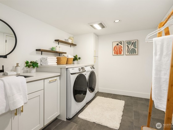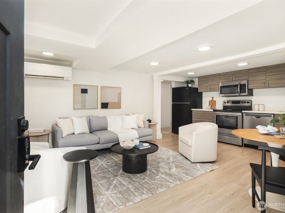 Beautifully reimagined Bryant home offering flexibility, charm & proven rental income! Fully remodeled top to bottom, this 5-bed, 2.75-bath gem lives large with two complete living spaces. The main home (3bed/1.75bath) features airy, open-concept living, designer kitchen, & serene primary suite w/deck access overlooking the private backyard. Downstairs, a 2bed/1bath ADU w/separate entry features full kitchen & laundry w/strong rental history, ideal for guests, multi-gen living, or investment near UW & Children’s. Enjoy new systems, timeless finishes, & effortless indoor-outdoor flow, from the welcoming front porch swing to the sun-soaked entertaining deck. A turnkey opportunity in one of NE Seattle’s most beloved neighborhoods!