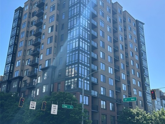 Enjoy luxury urban living at Avenue One - a contemporary steel and concrete building in a 5 star location. This first floor unit is conveniently located only steps away from the building's upscale amenities: the guest suite, fitness gym, and resident lounge w/outdoor grilling patio. Stroll to the Olympic Sculpture Park, waterfront or downtown dining, Climate Pledge Arena, and the Space Needle - walk score of 96. This studio unit is equipped with a space-saving Murphy bed, gourmet kitchen, full bath, updated lighting, new paint, updated electrical, new water heater, and engineered wood floor. Includes secure parking, a storage unit, and bike storage. Great city retreat to avoid weekly commute. Stunning views of Sound & city from roof deck!