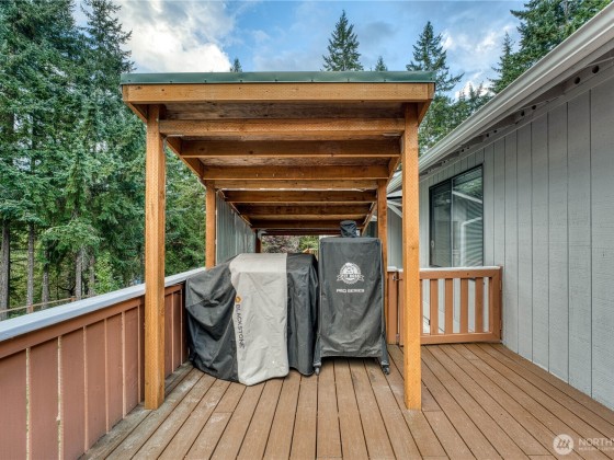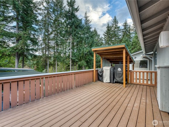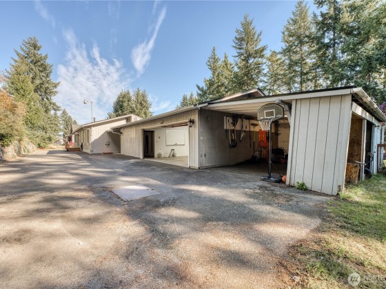 Stylish, affordable home with shop-sized garage and extensive upgrades since 2018—new roof, exterior paint, full kitchen remodel, flooring, bathrooms, custom closet, mini-split heat pump with A/C, composite deck, and back yard fenced. The new kitchen is exceptional, Corian countertops, soft close drawers and a closet pantry with pull out shelves. Located on a quiet dead-end street near Scenic Beach State Park with, peekaboo mountain views, and Hood Canal beach rights. Easy maintenance landscaping, most of the property is paved, so no weekends working on the lawn. Easy commute to shipyards and CK School District. Modular construction meets or exceeds all county building codes, offering superior quality over manufactured homes.