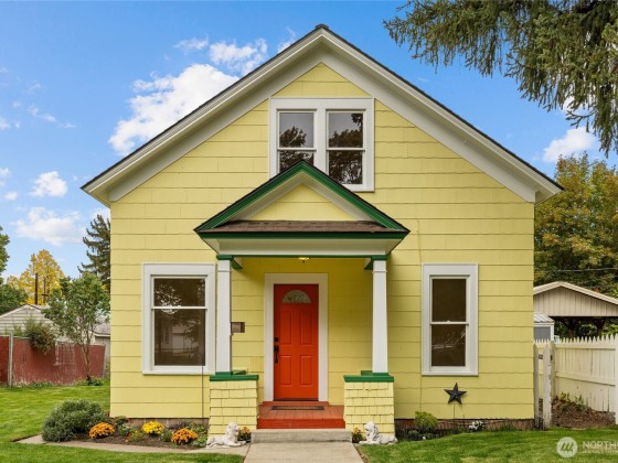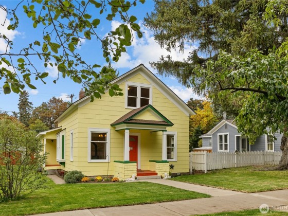 Welcome to this 1910 gem. This 3-bedroom, 1,511 sq ft and greets you with a delightful soft yellow exterior highlighted by a vibrant orange door. The layout includes bright, airy living room ideal for entertaining, and a versatile detached office that caters to all your work-from-home needs. The modern kitchen is equipped with updated appliances while retaining its historic character. Step outside to a scenic outdoor sanctuary featuring a lush lawn enveloped by mature trees, offering a serene retreat for leisure and gatherings. Located just moments from downtown Ellensburg and Central Washington University (CWU), you are surrounded by vibrant energy and community spirit. Don’t miss the chance to make this charming historic home your own.