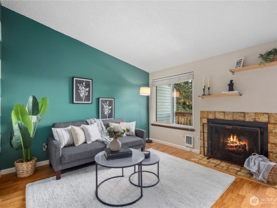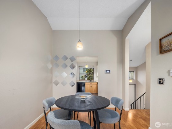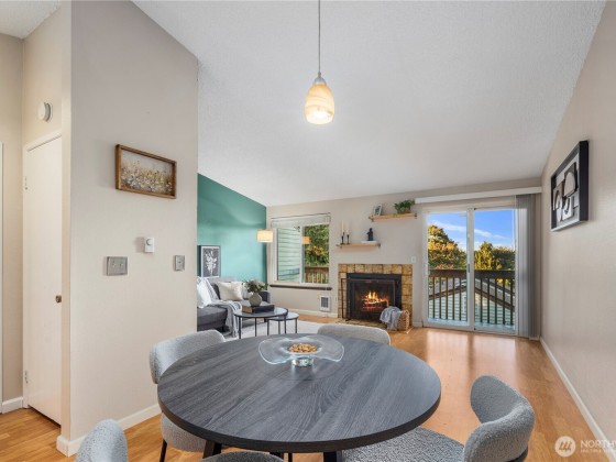 Welcome to this bright & inviting townhome-style condo in the heart of Tukwila! Perfectly located just mins from Southcenter Mall, SEATAC Airport, I-5 & I-405, this home offers the ideal balance of comfort, style & convenience. Step inside to soaring vaulted ceilings & an airy, open-concept layout filled w/ natural light. The cozy kitchen w/ stainless steel appliances flows into spacious living & dining areas designed for connection & ease. Guest bath is a great bonus! Enjoy 2 generous bedrooms including a Primary Suite with/ ample closet space & access to large bathroom. Relax on your private balcony, take in tranquil views & enjoy low-maintenance living close to everything you love! HOA Covers water, sewer, garbage and maintenance.