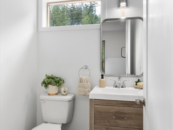 Experience elevated living in this nearly new home that blends modern luxury with Northwest charm. Open Floorplan: Chef’s dream kitchen with new stainless steel appliances, oversized island, quartz countertops, and soft-close cabinets. Spacious Living Area: Enjoy year-round comfort with A/C for summer and a cozy gas fireplace for cool nights. Primary Suite Retreat: Luxurious suite with custom lighting and a spa-inspired bath. Versatile Space: 4 bedrooms, including a flexible area for a home office or guest room. Outdoor Living: Deck with serene forest views, perfect for alfresco dining. Pre-inspected and move-in ready—this upscale home is ideal for multigenerational living with minimal yard maintenance!