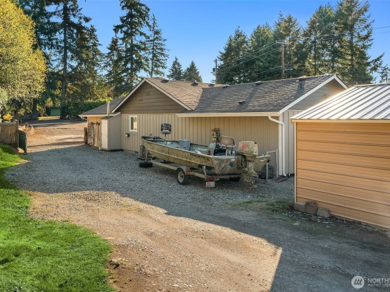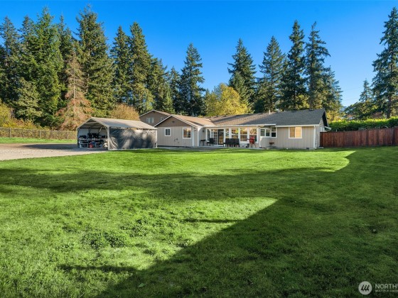 Set on a private acre within Tacoma’s Brookdale community, this fully remodeled residence exemplifies quality craftsmanship and modern comfort. A tranquil fountain greets you at the entrance, setting the tone for the property’s serene ambiance. The true culinary kitchen stands as the heart of the home—featuring custom cabinetry, granite countertops, dual ovens, & hand crafted farm sink—flowing seamlessly into the dining area highlighted by a stunning fireplace. Outside, the expansive grounds offer endless potential to entertain and accommodate RVs and boats, complemented by a substantial-sized collector’s car barn. With no HOA and grandfathered approval for horses, the property offers freedom and privacy in one refined setting.