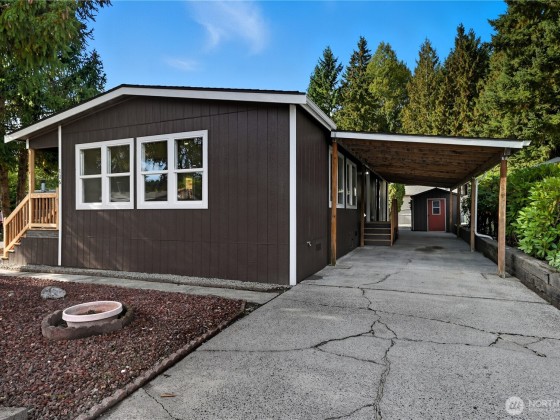 Welcome to your newly updated home on an OWNED LOT in the desirable Brookside Village 55+ community! Step inside to find an inviting open layout with vaulted ceilings in the kitchen and living room, allowing tons of natural light. Enjoy new stainless steel appliances, quartz countertops, fresh interior and exterior paint, and luxury vinyl plank flooring throughout. The primary suite includes a walk-in shower and closet, plus an additional bedroom and full bath with tub and tile. Relax by the cozy fireplace or entertain on the covered patio deck. Home also features new siding, roof, gutters, decks, insulation, vapor barrier, and a powered shed with covered carport. Conveniently located near parks, shopping, restaurants, and amenities!
