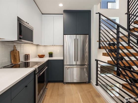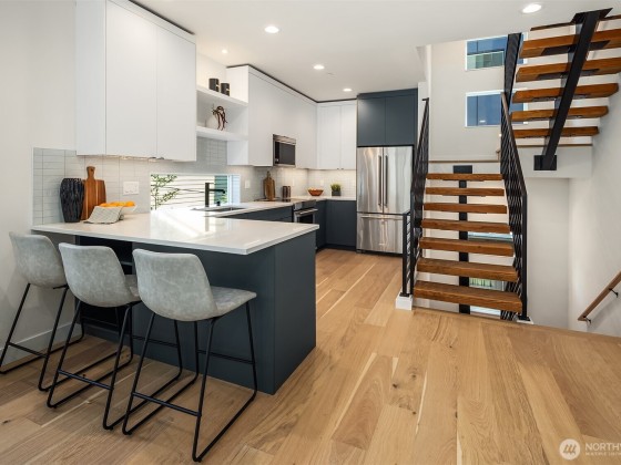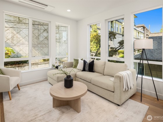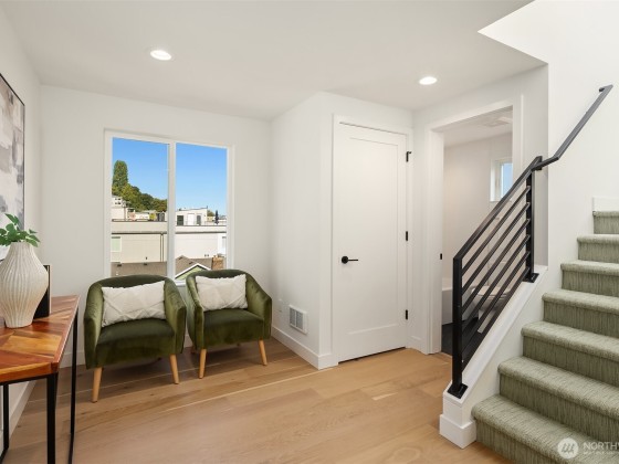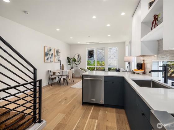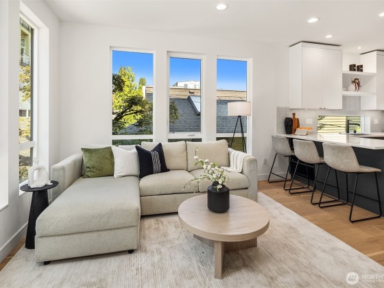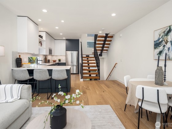 Live where Seattle comes alive—just minutes from SLU, lakeside trails & Queen Anne cafés. From your private rooftop deck, soak up Lake Union views, sparkling city lights & host summer nights under the stars. Inside, three bright bedrooms & an open, social floor plan make everyday living feel connected. The sleek gourmet kitchen is ready for dinner parties, while the floating open-tread staircase doubles as a design statement. The bonus flex room is perfect for your WFH setup or home gym. Zoned heating + A/C keep it cool in summer and cozy in winter. Covered EV-ready parking, WA/DR included, engineered hardwoods, & plenty of storage round out the perks. Urban living, elevated.*Ask your broker about our 1.5% lender promo!*