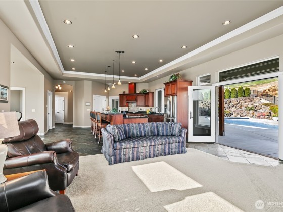 Discover refined living at 7506 Plateau Place—an elegant 3,249 sq. ft. home in a premier West Valley neighborhood. The chef’s kitchen features custom cabinets, stainless-steel appliances, and a large island with prep sink, seating for 4–5, and open to the dining and living areas. Main-level highlights include the primary suite, guest bedroom, laundry/mudroom, and office with built-ins. Upstairs, find a spacious bonus room and an additional bedroom. Outdoors, enjoy two covered patios, and an in-ground pool. An oversized 3-car garage with workbench completes this exceptional property.