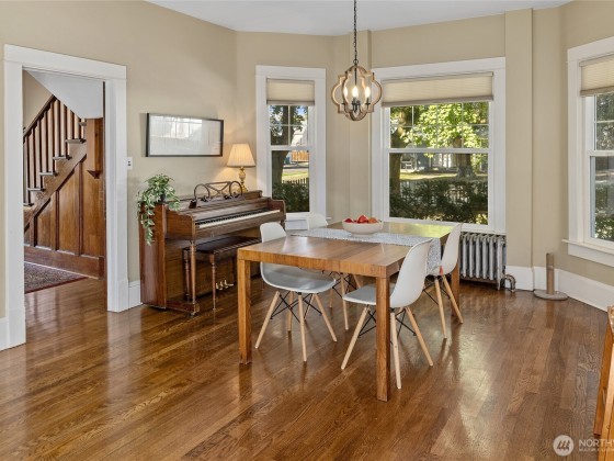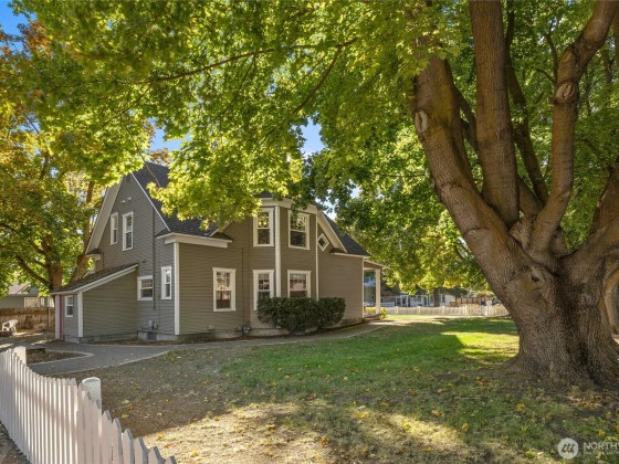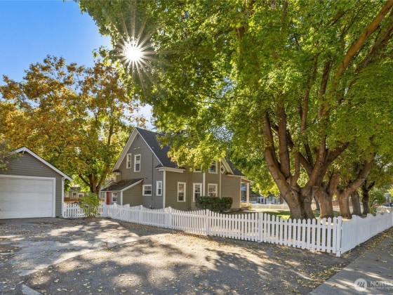 Experience the timeless charm of this meticulously maintained 1920 built home just minutes from downtown Ellensburg and CWU. With 2,038sf, this 3-bedroom, 2.5-bath home blends historic character and modern comfort. Enjoy original millwork, hardwood floors, and built-ins, plus a beautifully updated chef’s kitchen open to the dining area and den—perfect for gathering. Upstairs, find new carpeting and a spacious primary suite with lovely en-suite bath. Mature maple trees shade the oversized corner lot that also features a fully fenced yard, paver patio with fire pit, detached garage, and off-street parking. Recent maintenance and upgrades include, a new oven and gas line update, tree maintenance and trimming, fence repair and paint.