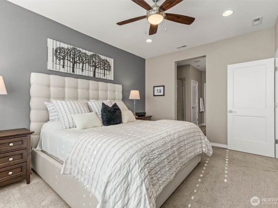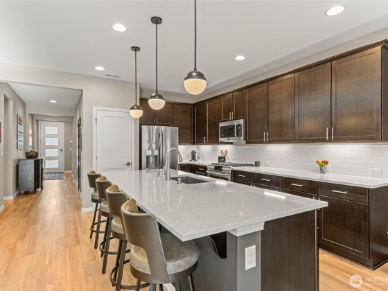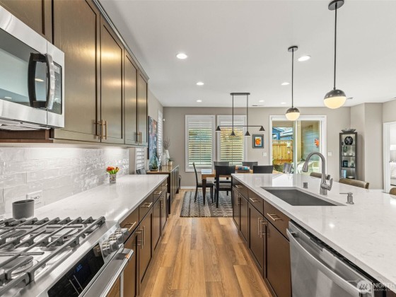 Trilogy at Tehaleh-Premier 55+ Resort Living!Step into elegant comfort in this impeccably maintained, like-new home featuring an attached 2-car garage and upscale finishes throughout. The chef’s kitchen impresses with pristine 42" shaker cabinets, quartz countertops, and top-tier appliances, GE Cafe dual range. Den murphy bookcase secret door! Plantation shutters, low maintenance LVP flooring. Custom prmry closet. Private outdoor oasis awaits:covered patio with with remote sunscreen shades, central A/C, tankless water heater, Generator hook up, prewired for 2 EVs, security system, 2 wtr fountains, fully insulated garage. Live the Trilogy lifestyle with exclusive access to the Lodge, pool, fitness center, restaurant, +pickle ball. Must See!