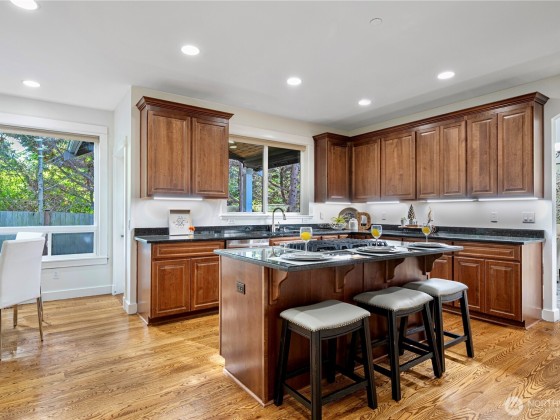 Welcome to this spacious and serene Kenmore home just steps from Inglemoor High School. Soaring vaulted ceilings and wrought-iron railings set an elegant tone, while the open-concept layout offers room for everyone. The gourmet kitchen features a large island, pantry, and gas range—perfect for everyday living or entertaining. Enjoy multiple gathering spaces, including formal living and dining rooms, a cozy family room with fireplace, and a main-floor den. Upstairs, find 3 bedrooms plus a generous bonus room and a luxurious primary suite with soaking tub, double shower, and walk-in closet. The large backyard with fruit trees and covered patio invites outdoor living. Three-car garage and Northshore’s top-rated schools complete the package!
