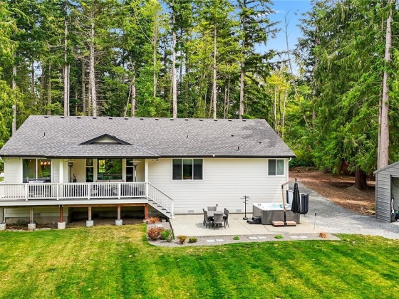 Experience the perfect blend of private country living & modern luxury in this beautiful 2023-built rambler, peacefully tucked away at the end of a private drive on a secluded 1.19-acre lot. This 3 bed, 2.5 bath home w/ large office boasts vaulted ceilings & a bright, modern kitchen featuring quartz countertops, SS appliances, walk-in pantry & oversized island perfect for entertaining. Spacious primary suite offers a luxurious bath complete w/ freestanding soaking tub. Enjoy year-round comfort w/ central AC & a luxury 8 person hot tub. Outdoor highlights include a covered Trex deck, 20x22 powered steel shop, garden area w/ plumbed water, 3 car garage & RV/boat parking. Prior county-approved plans for a potential ADU adds future potential.