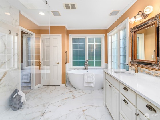 This stunning Campus Estates home sits on a premier corner lot and showcases soaring vaulted ceilings, a grand staircase, and elegant formal living and dining rooms. The chef’s kitchen features high-end appliances, including a Sub-Zero refrigerator and freezer, Viking range, and dual dishwashers. The main-floor primary suite offers an updated spa-inspired bath with a soaking tub, walk in closet and a private office. Upstairs, discover three additional bedrooms including a second ensuite, guest bath, bonus room, and laundry. Lush, mature landscaping surrounds a private patio designed for relaxing and effortless entertaining. All conveniently located near restaurants, shopping, transit, and I-5.