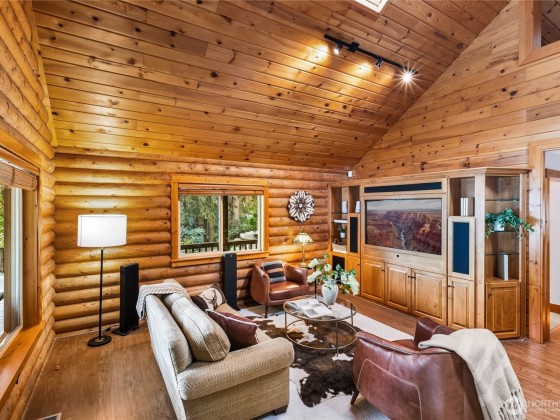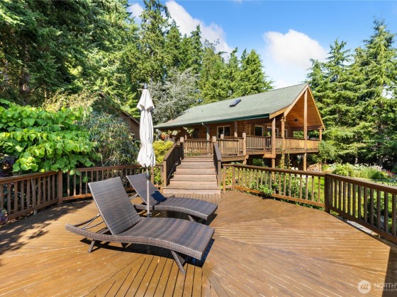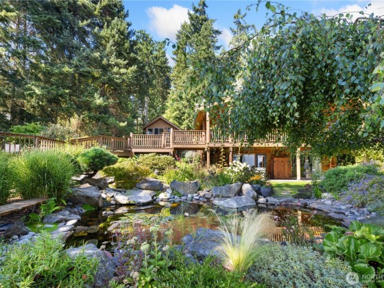 Hidden away in the lush beauty of the Pacific Northwest, this waterfront retreat offers a rare blend of elegance, privacy, and natural wonder. Enjoy sweeping views of Puget Sound & Cascade Mountains through walls of glass. A dramatic river-rock fireplace anchors the living space, while the chef’s kitchen—with expansive island, gas range—invites gathering and connection. Step from the primary suite to the hot tub to greet the sunrise, or unwind in the spa-like steam shower. Entertain on expansive decks near the cascading waterfall & tranquil pond surrounded by gardens overlooking the ever-changing tides. A guest apartment above the garage provides the perfect private escape for visitors. Auto generator, extra garage/shop, dog-run, see video