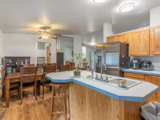Well maintained home in ALL AGES PARK! Spacious and inviting! This three bedroom, 2-bath home features an open-concept layout with vaulted ceilings and abundunant national light. Oversized primary suite includes a large en-suite bath. Plus theres a roomy mud/laundry area with excellent storage throughout. Tucked away on a secluded lot, enjoy your own garden oasis with fruit trees and space to relax. A perfect blend of comfort, privacy and community living.