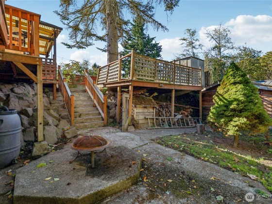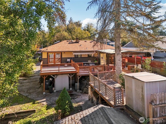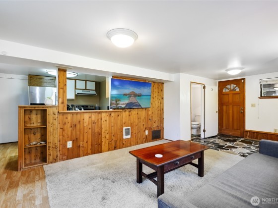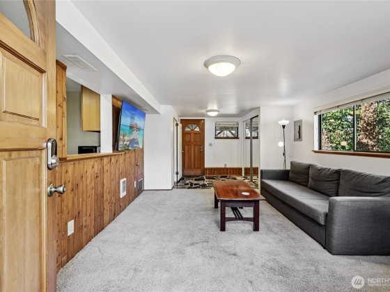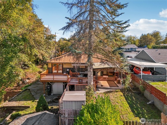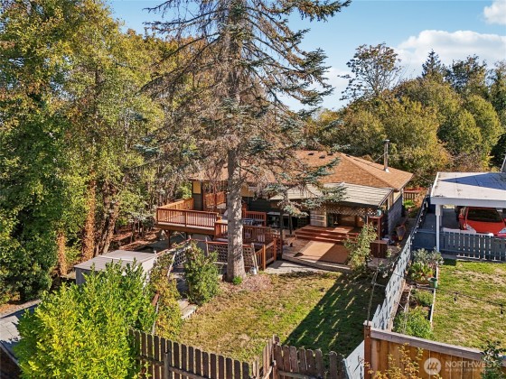 Tucked away on a quiet dead-end street, this spacious home offers a flexible layout perfect for multi-generational living or income producing opportunities. The main level features an open-concept design filled with natural light, dining space and fantastic kitchen- complemented by an oversized covered deck that overlooks a private backyard and adjacent green space- no side neighbors! Main level also boasts 2 bedrooms and a full bath, while the fully finished lower level includes 2 additional bedrooms, 1.5 baths, a second kitchen, and separate entrance—ideal for extended or short term stays. Ample off-street parking and easy access to the H Line bus (direct access to DT Seattle), and next door Delridge Native Forest Garden Project underway!