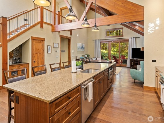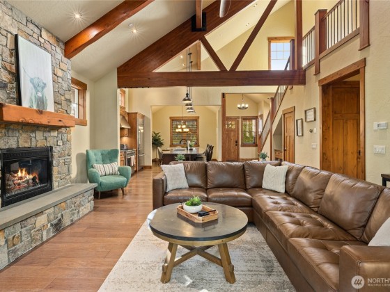 Located in the coveted Prospector’s Reach neighborhood, this mountain retreat places you within minutes of it all - the Suncadia Social, Lodge, Swim & Fitness Center, restaurants, trails, and more! Thoughtfully maintained, the home features an open layout with vaulted ceilings, stone accents, and rich millwork throughout. A primary ensuite on the main level is joined by an upstairs ensuite and newly added built-in bunk beds to maximize space and rental potential. Enjoy your private hot tub, covered patio with BBQ, and heated garage-turned-game room. Recent upgrades include wide plank hardwood flooring and an EV charger. Fully furnished for immediate enjoyment or holiday rental income.
