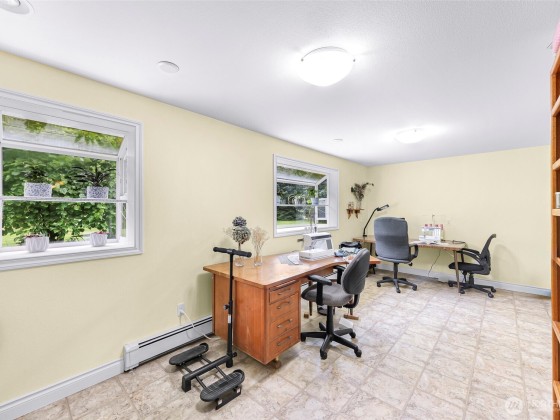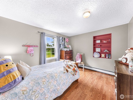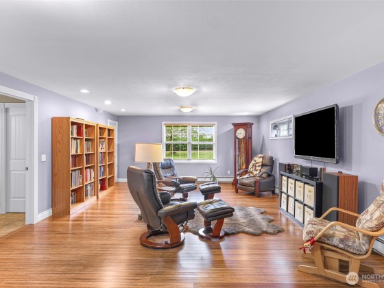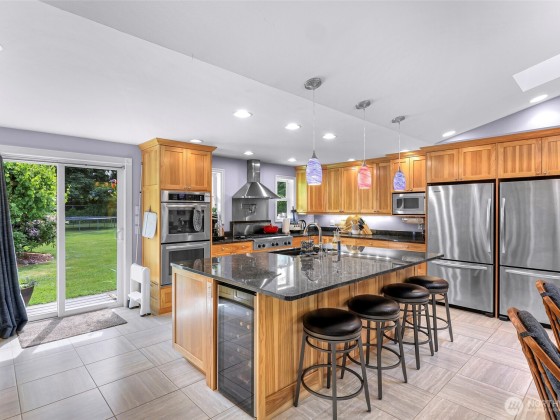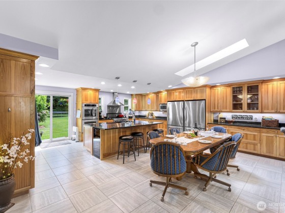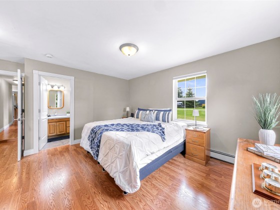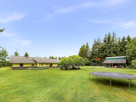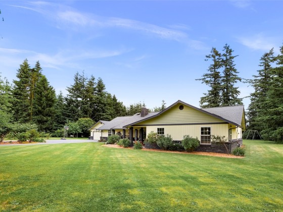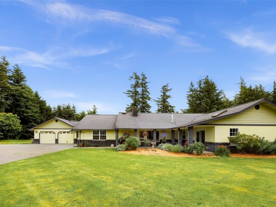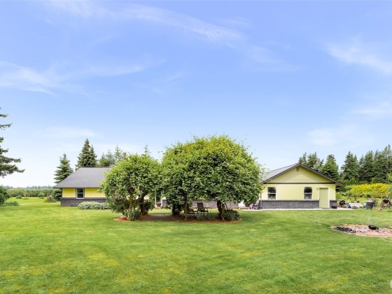 Beautiful spacious 1-acre property just outside City of Lynden in a quiet peaceful neighborhood of large lots, farmland, on a dead-end street. Updated single-level w/ vaulted ceilings, skylights, & a huge chef’s kitchen featuring custom solid wood cabinets, huge island, dining room built-ins, double ovens, pot filler, beverage fridge, granite counters. Two primary BDRMs w/ en suite baths, one with patio access & sitting/office area. Detached barn-style 2-bay shop, loft, covered carport, & paid-off solar panels. RV pad with 30-amp outlet & water line. Fruit trees, grapes, kiwis, sheds, pergola, chicken coop & run. Natural gas, 2-car garage with bonus shop space. All the room and features you’ve been looking for—just minutes from town!