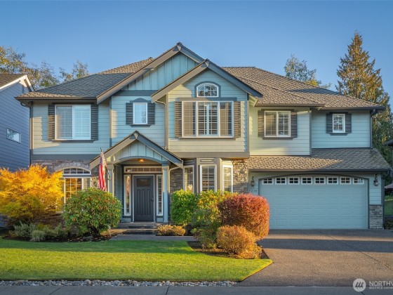 Nestled along the 7th hole of the prestigious Gleneagle Golf Course, this stunning traditional home perfectly blends elegance & comfort! Bright, grand living spaces feature fresh paint and timeless traditional details throughout. The freshly updated kitchen boasts quartz countertops, new appliances & an entertaining/prep island. Step outside to your golf course views, covered patio, outdoor kitchen, & fireplace. Upstairs, the expansive primary offers an updated ensuite w/ heated floors. Three additional bedrooms, hall bath, laundry room & large bonus room complete the upper level. This home is a true Arlington gem, offering quick access to downtown Arlington’s local favorites/year-round activities, plus easy commuting via Hwy-9 & I-5!