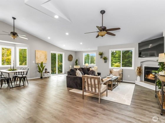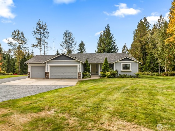 Escape to your private 5+ acre paradise in Granite Falls! This stunning one-owner Rambler blends comfort & craftsmanship. w/ 4 bd, 2 ba, 3 car garage. A airy open-concept design featuring vaulted ceilings & abundant natural light. The beautifully finished landscaping, tranquil pond & spacious patio create a peaceful retreat surrounded by nature & wildlife. A massive 30x60' shop w/ three 12’ roll-up doors, 9 covered parking spots, RV parking & power offers endless possibilities. Enjoy a 40-yr roof, heat pump, A/C, security system,new fixtures & floors—all on a quiet dead-end st, minutes from the lake, hiking, hunting, Snohomish, Monroe, Granite Falls. NO HOA, total privacy, & room for all of your projects & toys. Serenity & Comfort awaits!