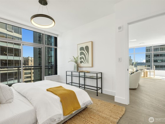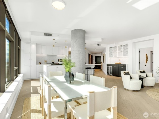 Soak in sweeping views of Puget Sound, the Olympics, & downtown Seattle from every room in this stunning Belltown home. Recently reimagined with a custom renovation that nails every detail—from the expansive open layout to the chef-worthy kitchen. Primary suite is a dream with spa-inspired bath & massive walk-in closet. Remote-controlled shades, built-in entertainment bar with wine fridge & flexible bonus nook perfect for desk or extra storage. Two rare parking spaces & storage unit included. View balcony. Luxe building amenities: rooftop deck with panoramic views, full gym & spa, multiple lounges, business center, wine storage & tasting room, & attentive 24-hour concierge service. Walk to world-class dining, waterfront & Pike Place Market