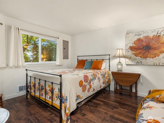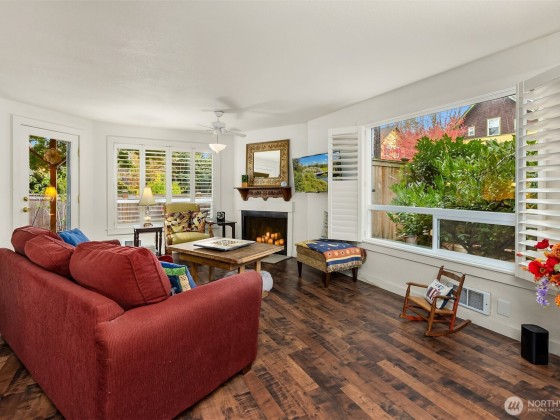 Charming Bainbridge Condo in the heart of downtown Winslow. Enjoy the perfect blend of comfort and convenience in this 3-bedroom, 2-bath ground-floor condo, just a short walk from boutique shops, cafes, shopping, parks, and the ferry. Inside, the home features elegant plantation shutters and a warm, inviting atmosphere throughout. Relax on your private patio with a small garden—ideal for morning coffee or unwinding in the evening. The unit also includes two dedicated parking spaces, an electric vehicle charging outlet, and extra storage, making it perfect for friends, visitors, or longer stays. Comfortable, stylish, and well-located, this condo is your home base for exploring all that Bainbridge Island has to offer.