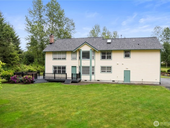 Welcome to your dream retreat! Nestled on 5 acres, this exceptional property offers the perfect blend of privacy & community living. Imagine coming home to mature landscaping & the peace and quiet you've been longing for-all while enjoying the comfort and connection of a friendly neighborhood. The spacious 2,900+ sq ft home features formal living and dining rooms, a stunning great rm w/ a 2-story river rock fp, a chef’s kitchen w/ ample space & a cozy dining nook. Upstairs, a primary suite is a sanctuary w/ a luxurious bath. 2 more bedrooms, a library/storage area, & a bonus rm offer flexibility. Enjoy a large Trex deck, 3-car garage. For the hobbyist or adventurer, you'll find the 1,600+ det. RV garage w/ heated office space. Welcome Home!