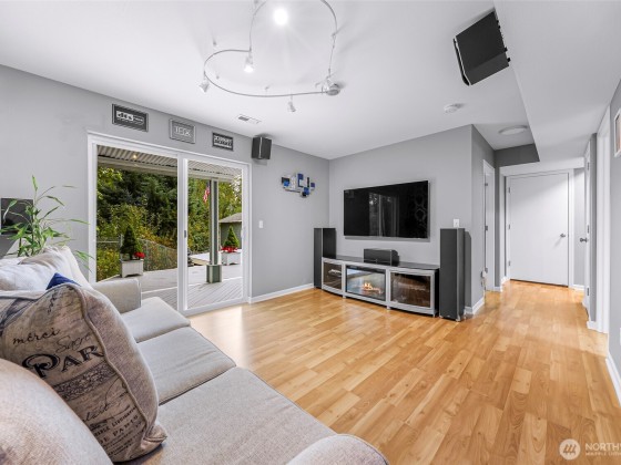 **Entertainer's Dream** Sitting at the end of a private drive, behind Heritage Park, w protected land on one side. The backyard is a HUGE deck w covered pinewood bar (Everything stays), covered deck off slider, & 3 insulated storage sheds! Upper deck w awning has view of pond to watch Eagles & Grey Herons. Insulated & finished 2 car garage for more entertaining space! Home has been lightly lived in, freshly painted inside/out, & is super clean!! Other features are 2025 water heater, 2021 roof/hardi plank siding/furnace/AC, granite counters, newer ss appliances, vaulted ceilings, electric FP w gas connection, theatre room in basement (decor can stay), RV/boat parking or 10+ cars. Pre-Inspected! Close to Mall, I5/405, Whole Foods & more.